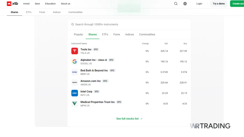 - XTB – 0% Commission on all supported markets