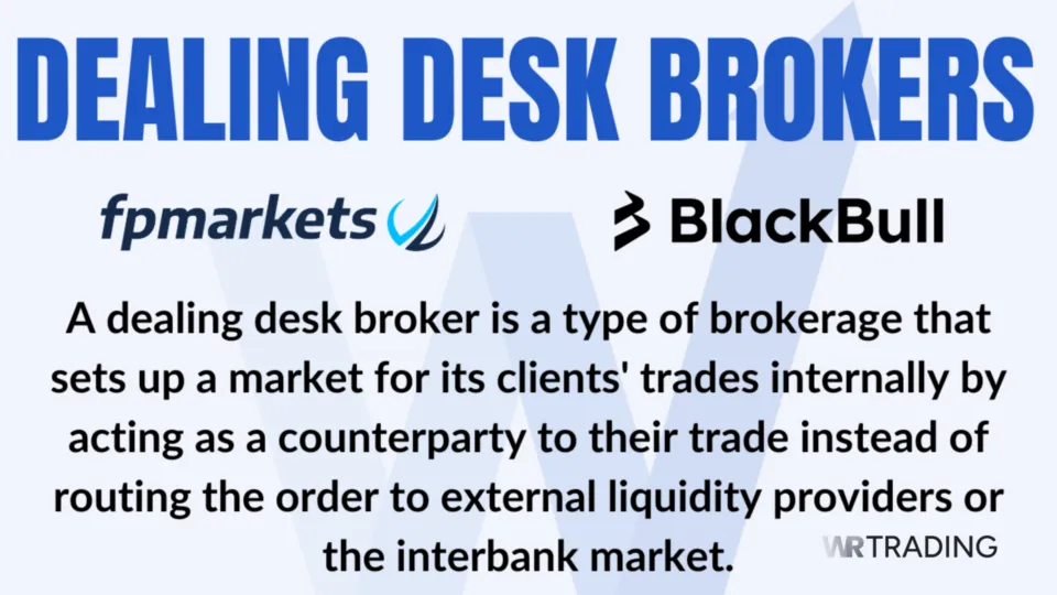 A dealing desk broker is a type of brokerage that sets up a market for its clients’ trades internally by acting as a counterparty to their trade instead of routing the order to external liquidity providers or the interbank market. In simpler terms, a dealing desk broker means you trade with the broker itself, not the outside market.