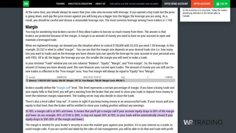Maintaining a sufficient margin in the trading account is crucial when trading with high leverage. The broker may issue a margin call if the account equity falls below the required margin level due to adverse market movements. If the margin call is unmet, the broker may close open positions (stop-out) to prevent further losses. This can result in traders losing their entire account balance rapidly.