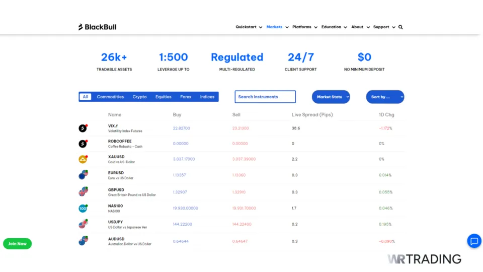 At WR Trading, we understand that finding the right broker for your MetaTrader 4 (MT4) needs is critical for the best trading experience. Our top three MT4 brokers include BlackBull Markets, Vantage Markets, and RoboForex. With these brokers, you can trade a wide range of assets, including forex pairs, commodities, indices, cryptocurrencies, and CFDs on stocks.