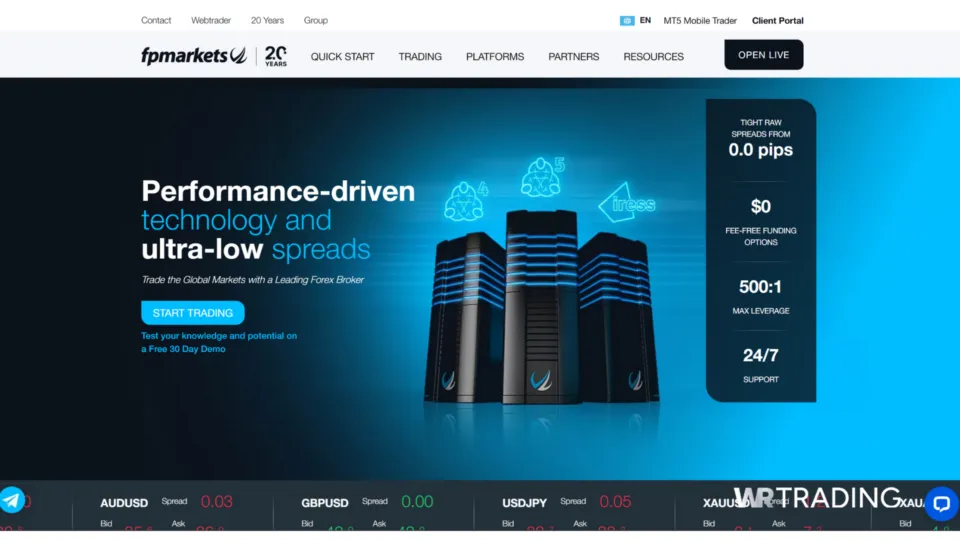 Vantage Markets impresses with its zero-spread accounts and exceptional execution speeds, which is why it took 3rd place in our list at WR Trading. We liked that their Raw ECN account offers zero spreads on major currency pairs, making it a cost-effective choice as commissions start from $1.50 per lot.