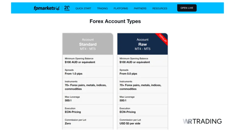 There are no differences between raw spread and zero spread accounts, as both follow the same commission based model. Traders are given access to market spreads that can reach as low as 0.0 pips, and the broker charges a commission per lot rather than widening the spread to generate revenue.