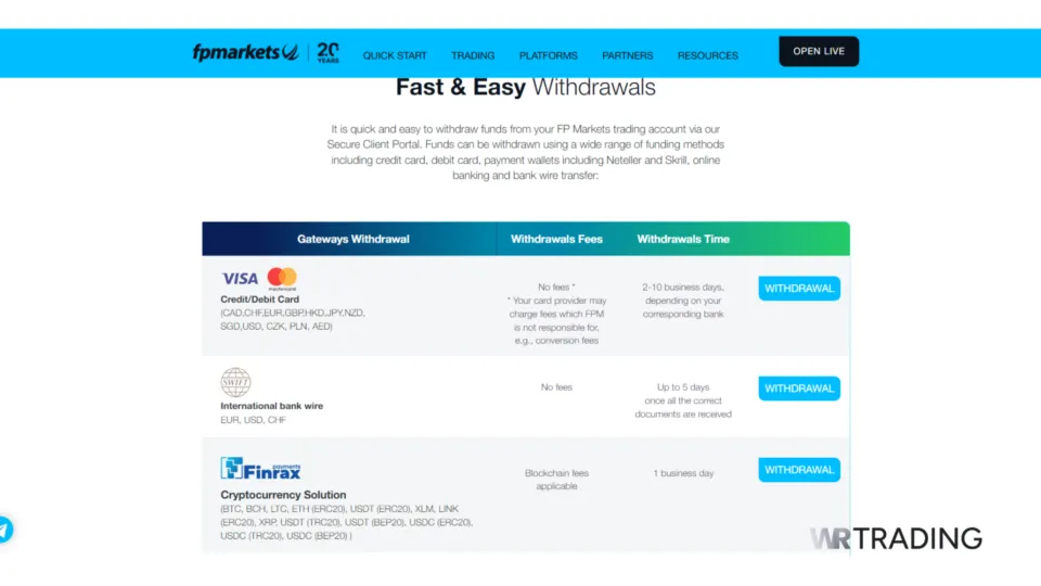 We’ve spent a lot of time using FP Markets at WR Trading, and we believe it’s an excellent choice for scalping. They offer very tight spreads starting from 0.0 pips, which helps you make the most out of small price changes. These low spreads are available for many major currency pairs, giving you plenty of trading options.