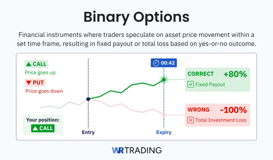 Binary options are financial instruments that allow you to speculate on the price movement of various assets, such as stocks, currencies, indices, commodities, and cryptocurrencies. They are called “binary” because they have two outcomes: a fixed monetary gain or complete loss of the investment, based on a yes-or-no proposition.