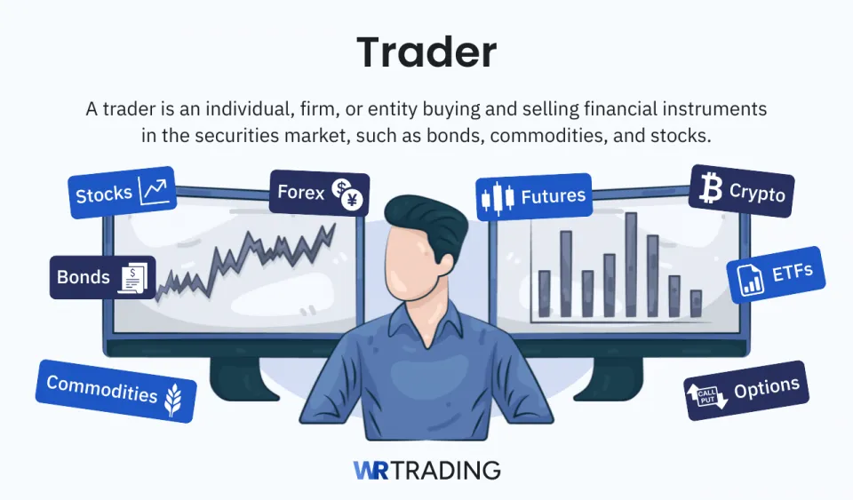 A trader is an individual, firm, or entity buying and selling financial instruments in the securities market, such as bonds, commodities, and stocks. Traders are different from investors as they hold assets for shorter periods to capitalize on short-term gains.