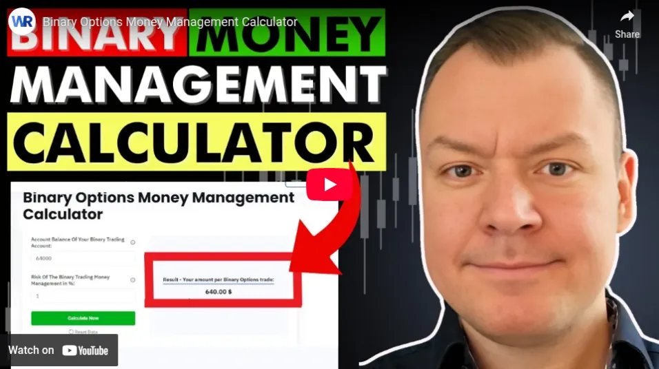 Our binary options money management calculator shows how to divide your trading capital across positions to limit risk. By setting account size, risk percentage, and strike price, it calculates the exact amount to stake on each trade.