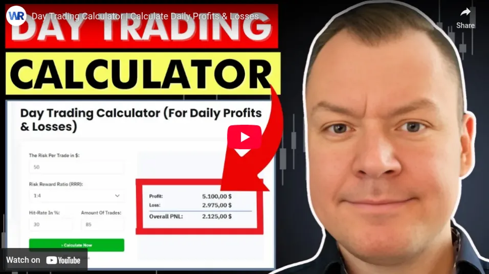 Our Day Trading Calculator helps traders calculate daily profit and loss while factoring in risk per trade, risk-reward ratios, and hit rates. At WR Trading, we provide a Day Trading Calculator to help traders assess risk, calculate potential profit, and stay disciplined in their strategy.