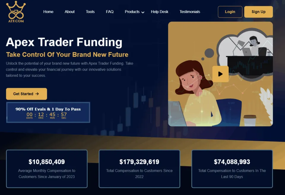 - APEX Trader Funding: Flexible futures trading on commodities and indices, up to 35 contracts, subscription model includes platform and market data fees. (Save 50% with the promo code “YVLUOYXD”)
