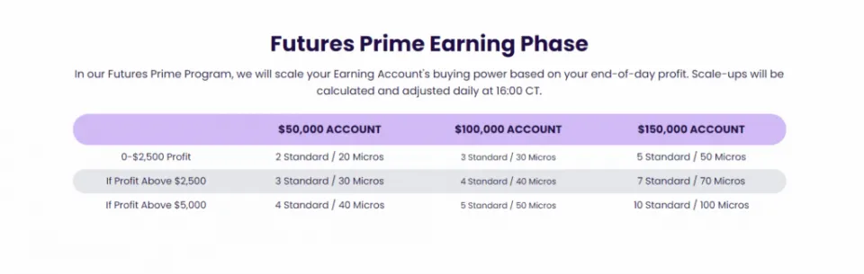 The Trading Pit has its own scaling plan that increases accounts’ buying power based on their end-of-day profits.